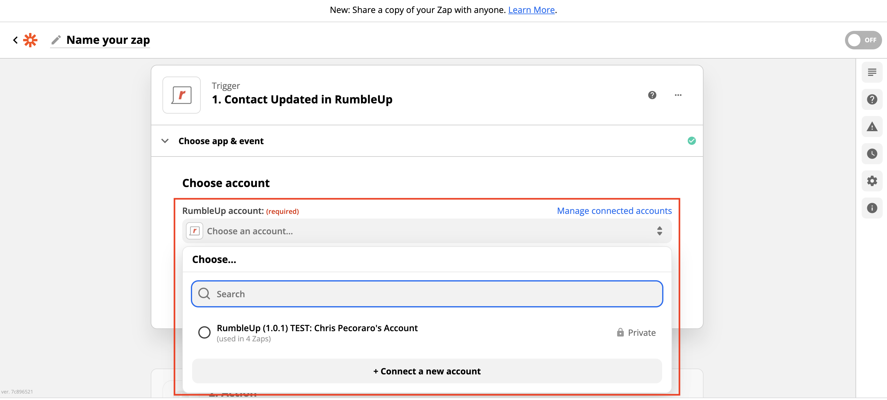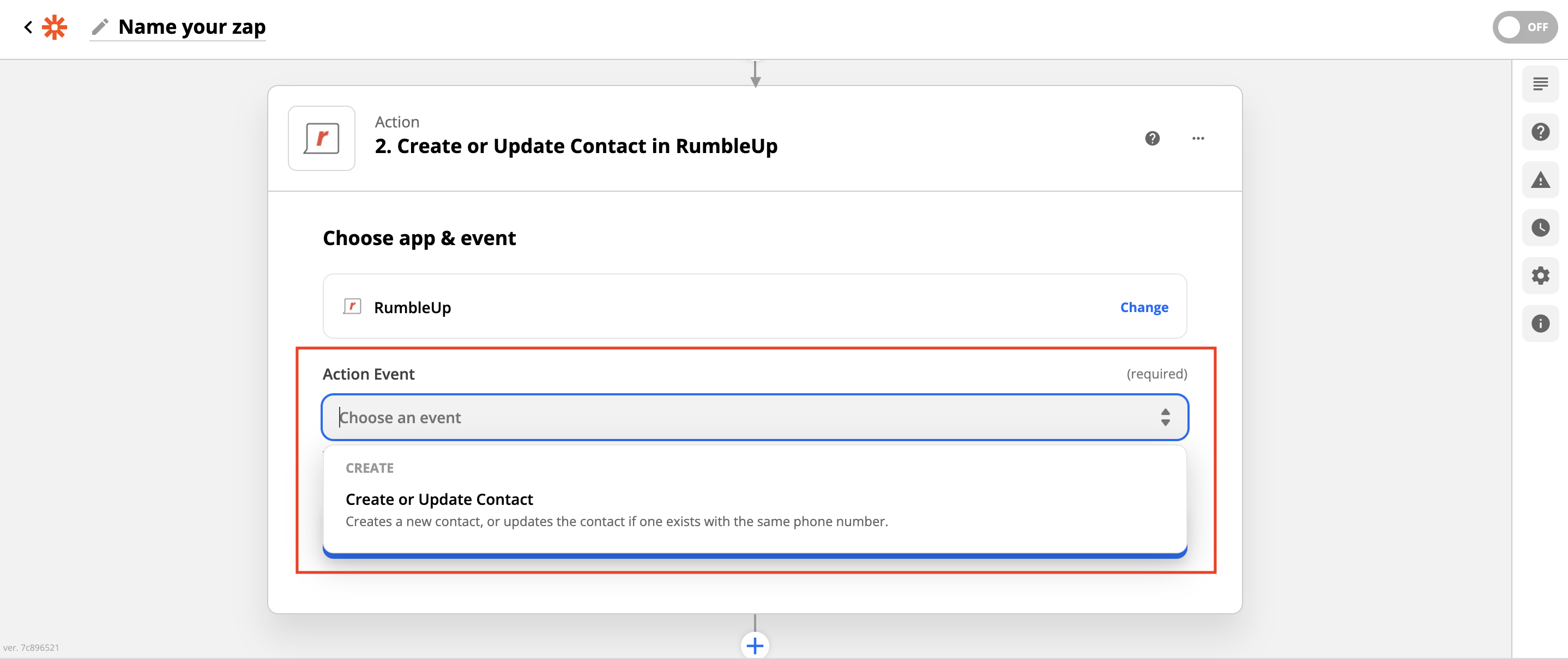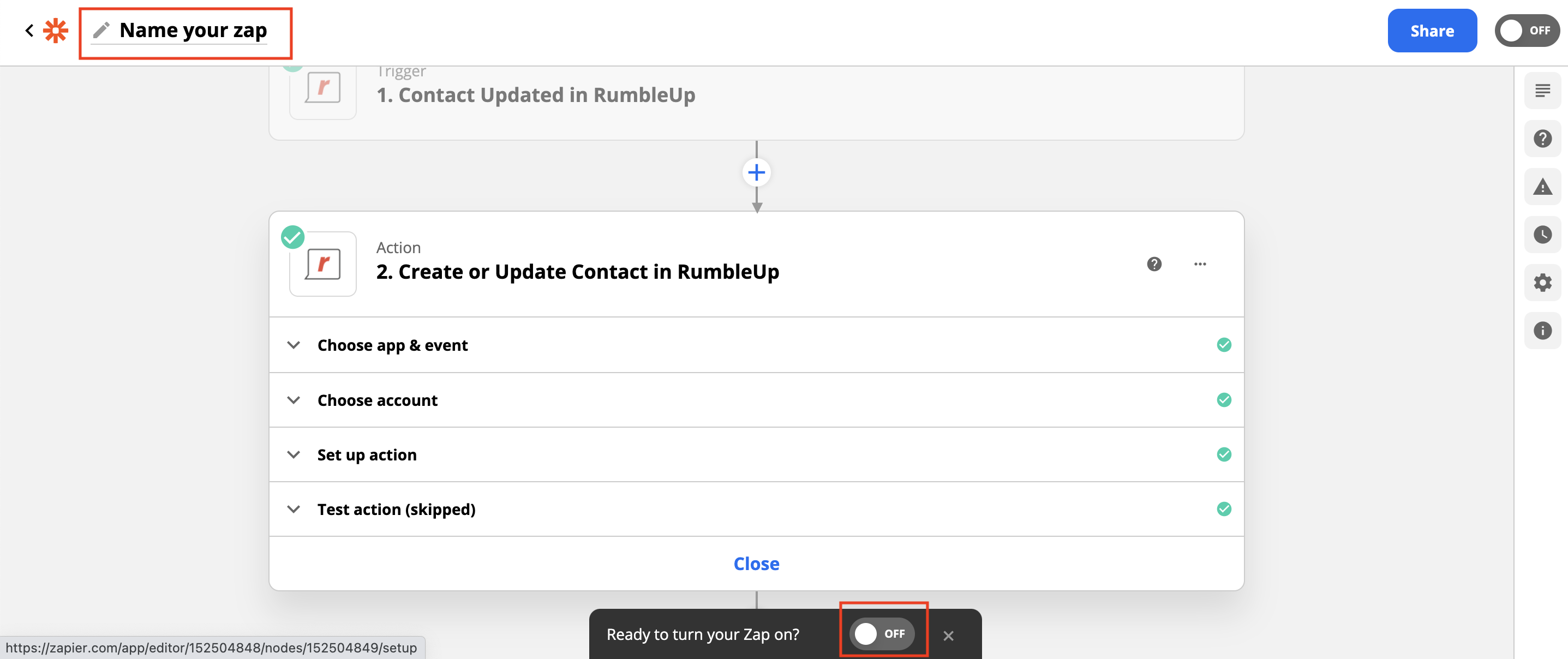 (If you’ve never made a RumbleUp Zap before, you will be asked to sign in. Login information is available at Integration / API Keys.