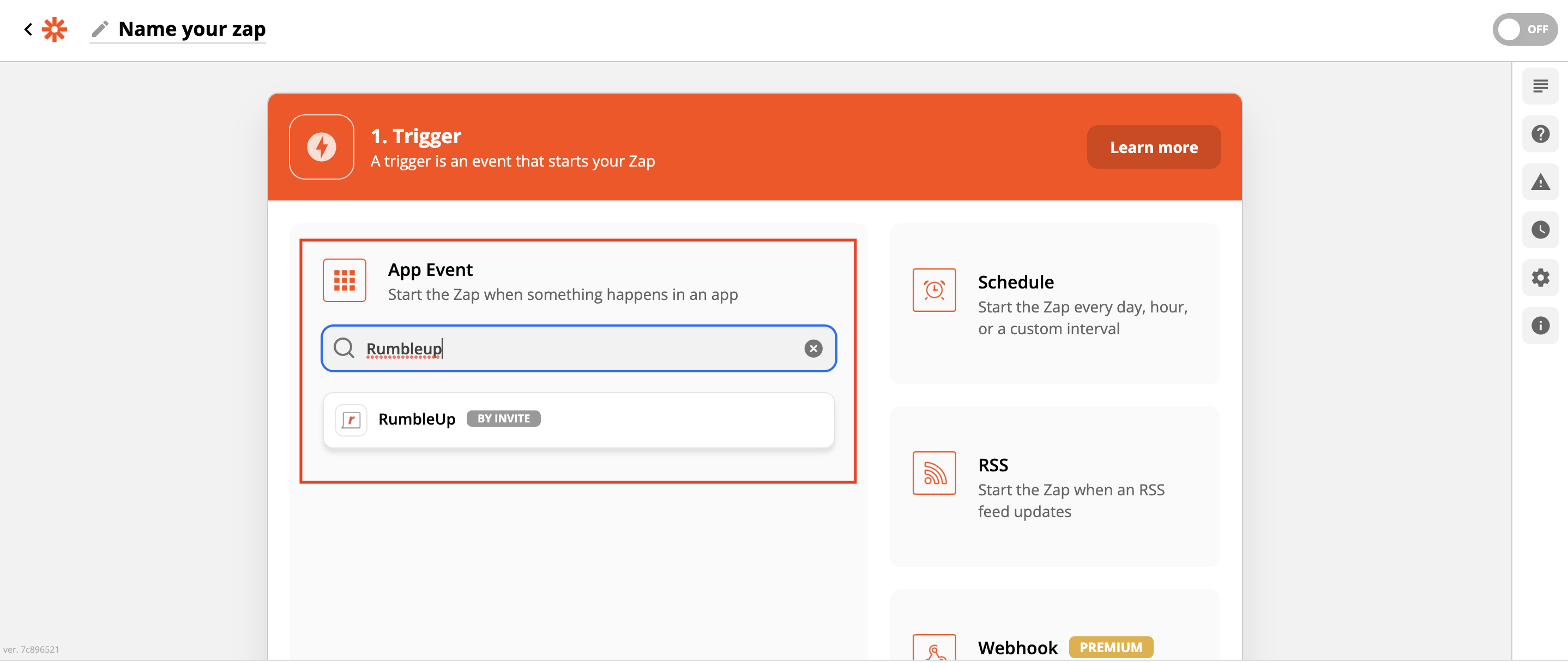If you want another app to trigger an action in RumbleUp, choose that app.
